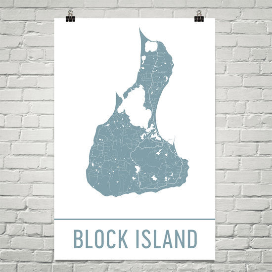 Block Island RI Street Map Poster Wall Print by Modern Map Art