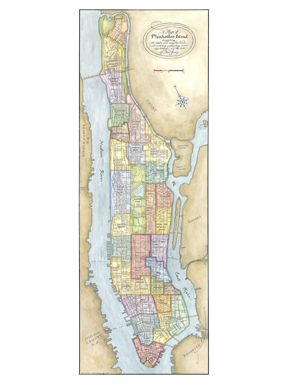 Manhattan Map, Map Art, Print of Manhattan Island Etsy