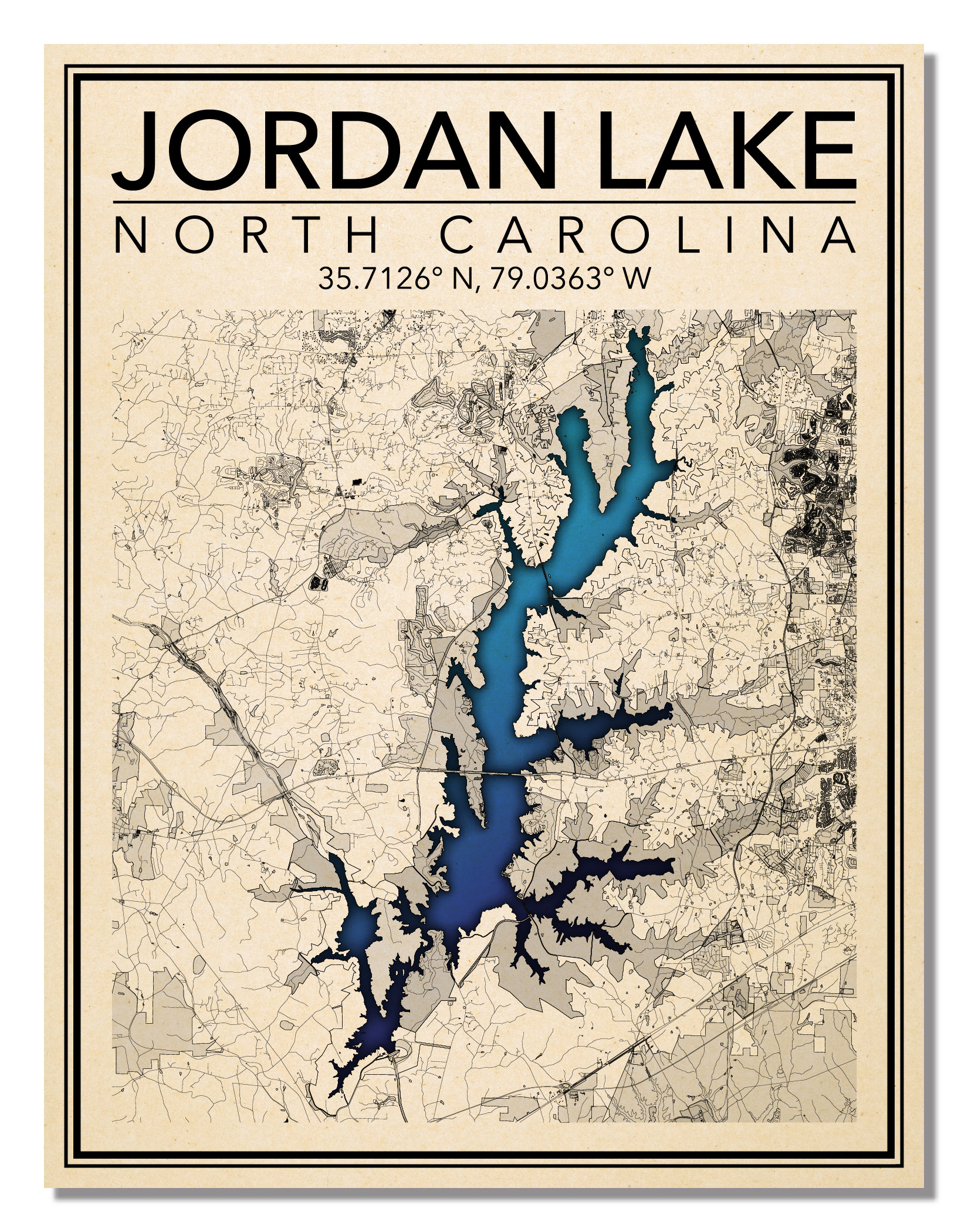 Wall Art Map Print of Jordan Lake, North Carolina Etsy