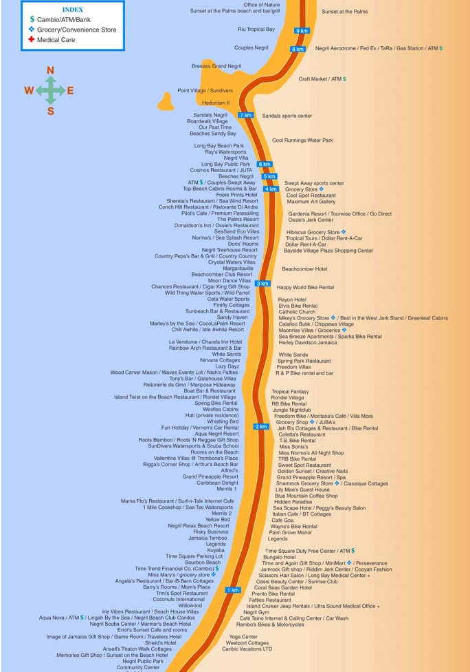 Negril 7 mile beach map | Negril, Negril jamaica, Jamaican beaches